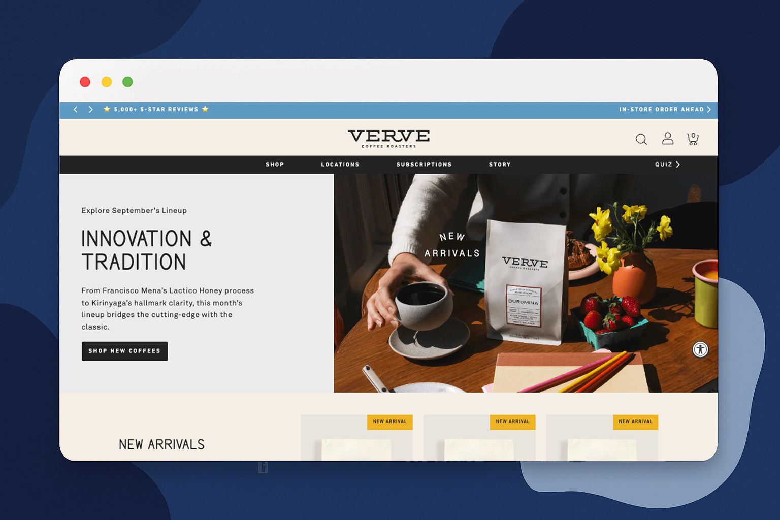 For this week’s website review, let’s look at Verve Coffee Roasters. Verve Coffee Roasters is a specialty coffee company based in Santa Cruz, CA, founded in 2007. They source and roast unique coffees through direct trade, operating cafes in California and Japan, and maintain a wholesale network, emphasizing quality from Farmlevel to Streetlevel.
